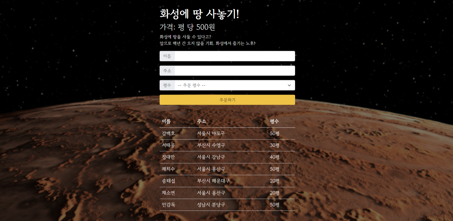 [Flask, MongoDB] 화성땅 공동구매 프로젝트 본문